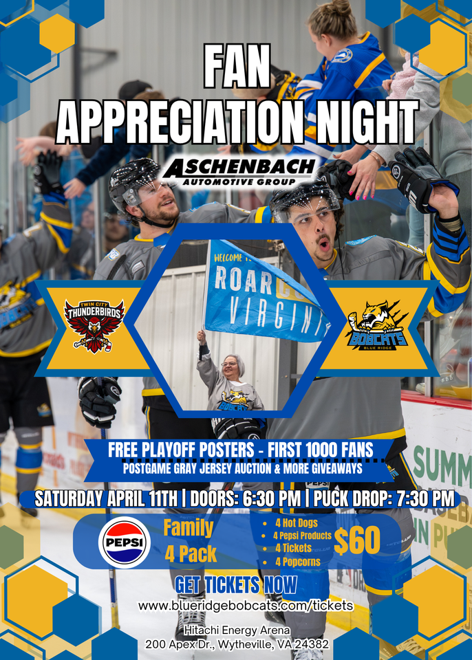 News Slider{{widget.isRotating ? 'pause_circle' : 'play_circle'}}Hussey Blanks IceCats, Blue Ridge Snags Franchise Record Seventh Straight Win Read More GALLAGHER'S GWG PUTS BOBCATS IN PLAYOFFS Read More Shrum's Second Straight Shutout Seals Sweep of Zydeco Read More Shrum's First Pro Shutout Carries Bobcats to 3-0 Win Over Zydeco Read More Hussey Blanks IceCats, Blue Ridge Snags Franchise Record Seventh Straight WinGALLAGHER'S GWG PUTS BOBCATS IN PLAYOFFSShrum's Second Straight Shutout Seals Sweep of ZydecoShrum's First Pro Shutout Carries Bobcats to 3-0 Win Over Zydeco